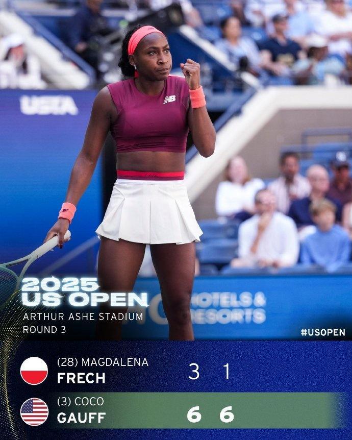 直播吧8月31日讯 2025美网女单第三轮,前赛会冠军、3号种子高芙以6-3 6-1完胜28号种子弗莱彻,取得美网第20胜,连续四年闯入赛会16强,这也是她职业生涯第16次进入大满贯第二周。接下来,她将静候卡萨金娜和大坂直美之间的胜者。